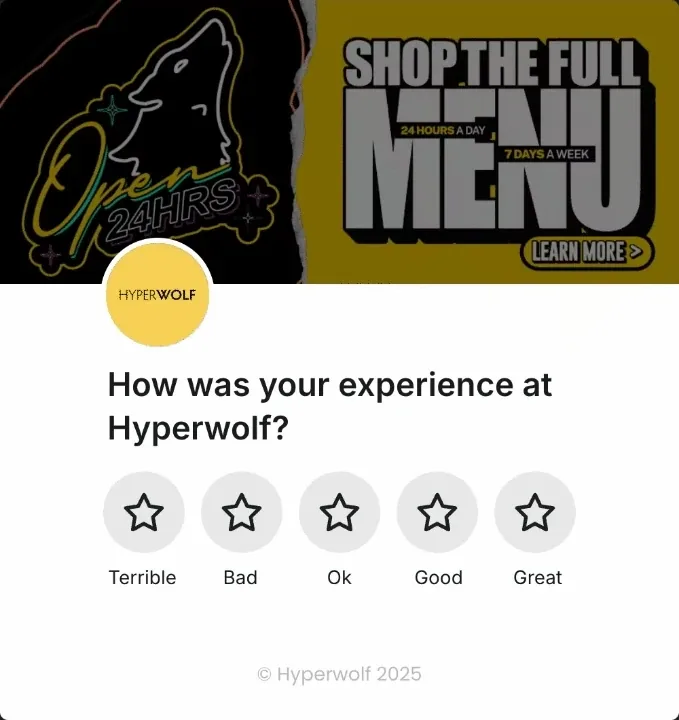 Morning sir, we're having some serious success with Google reviews & plan on pivoting to Yelp soon but want to put a plan in place first ... for Hyperwolf we’ve gotten about 100 Google reviews in a week.